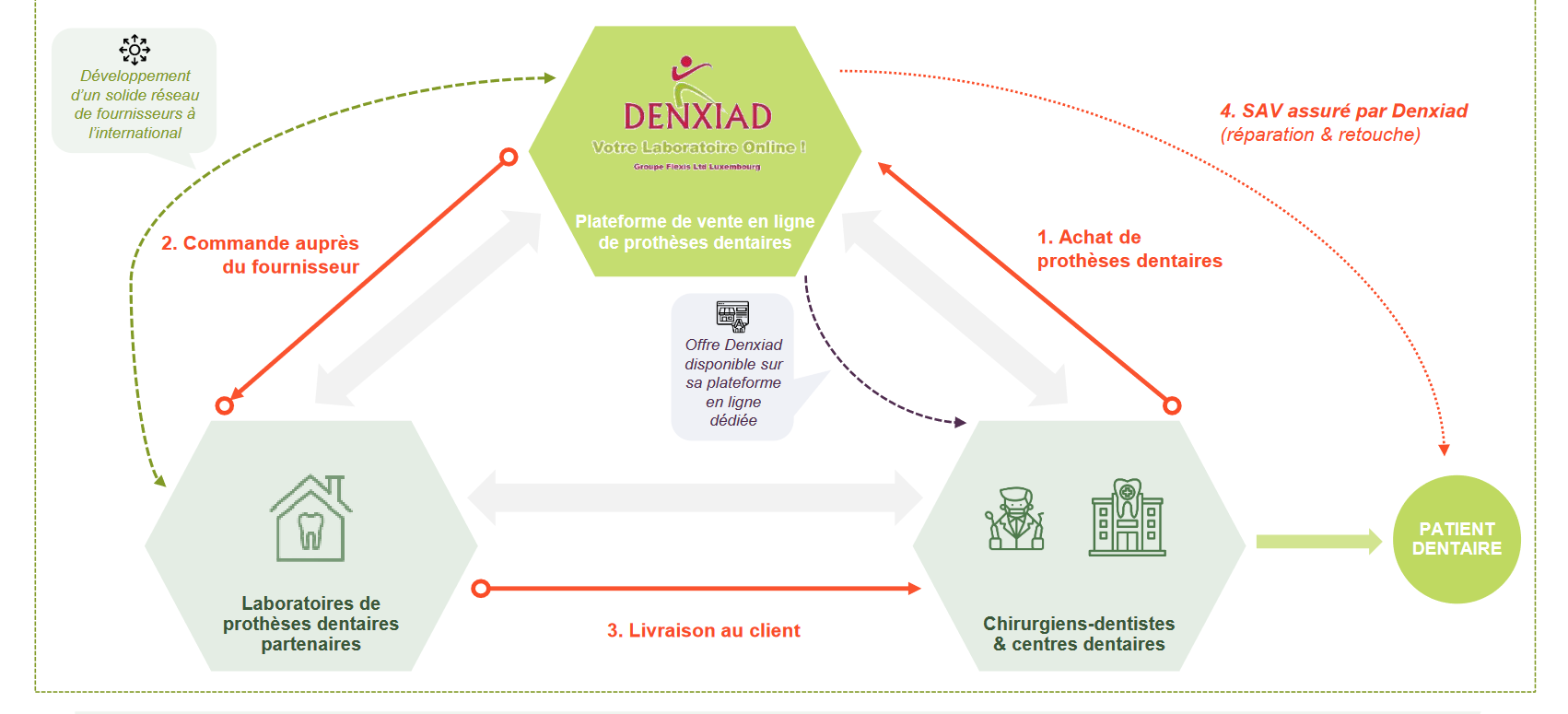 • Avec une plateforme de distribution intuitive et ergonomique www.denxiad-france.com, Denxiad ambitionne de devenir leader dans la vente de prothèses dentaires d’ici 5 ans