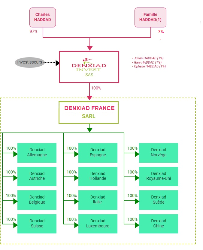 • DENXIAD France est actuellement détenu à 100% par DENXIAD INVEST S.A.S holding qui elle meme est détenu à 100% par la famille HADDAD.
